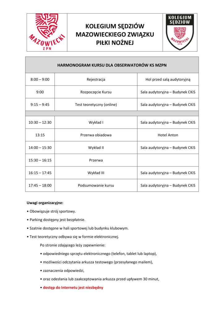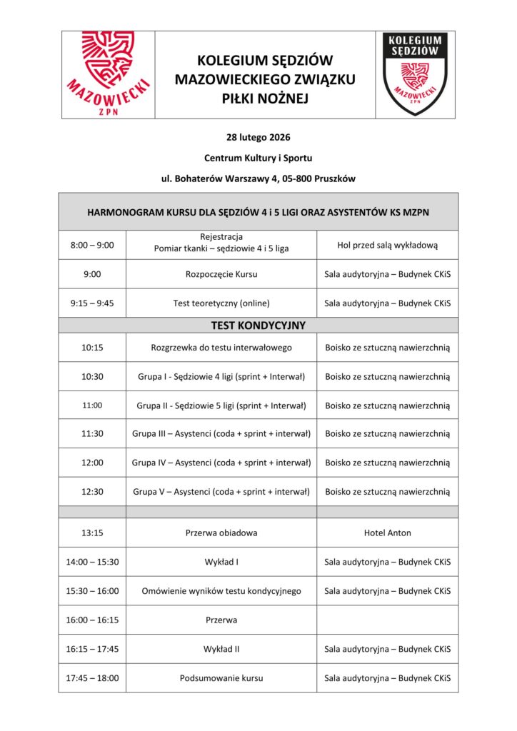 HARMONOGRAM EGZAMINÓW SĘDZI i SĘDZIÓW IV i V LIGI oraz ASYSTENTÓW MAZOWIECKICH
