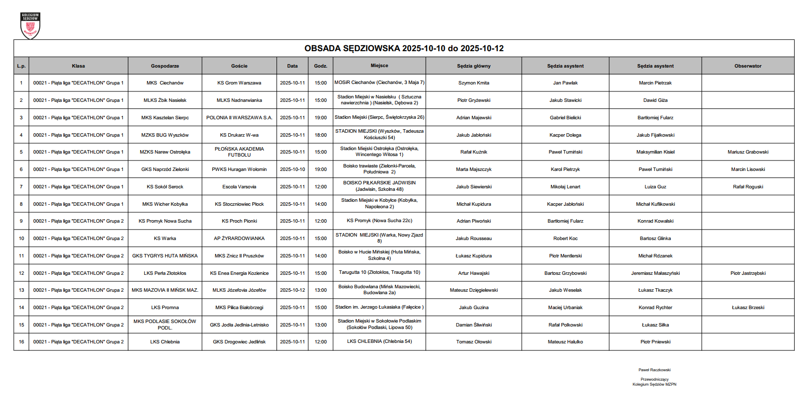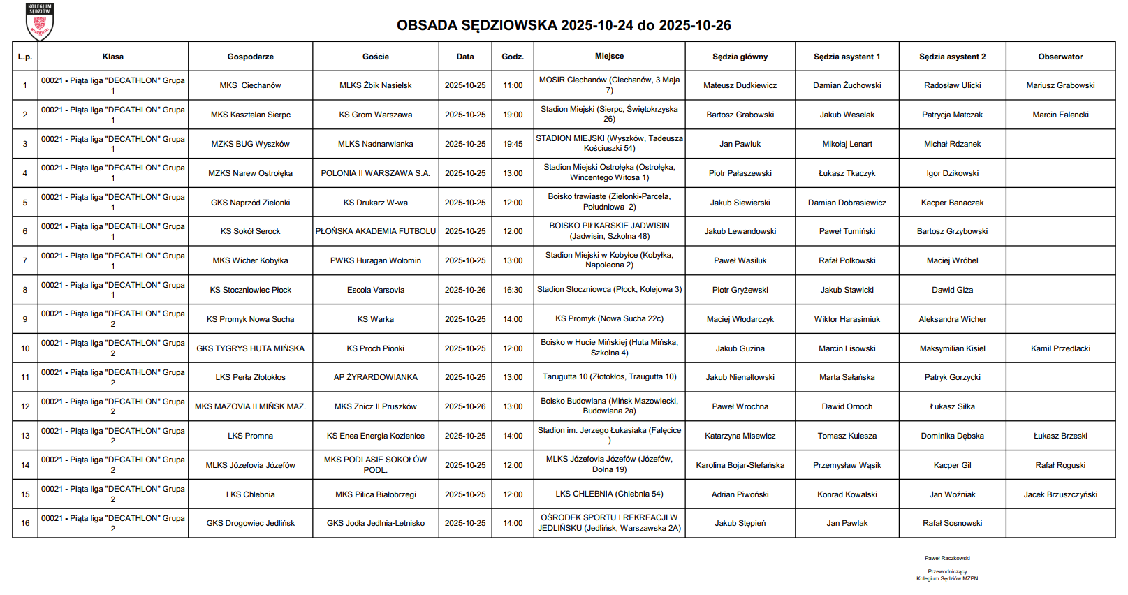 Obsada V liga – XII kolejka – 24-26.10.2025