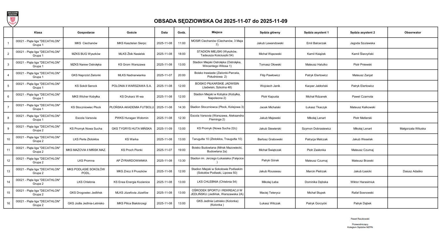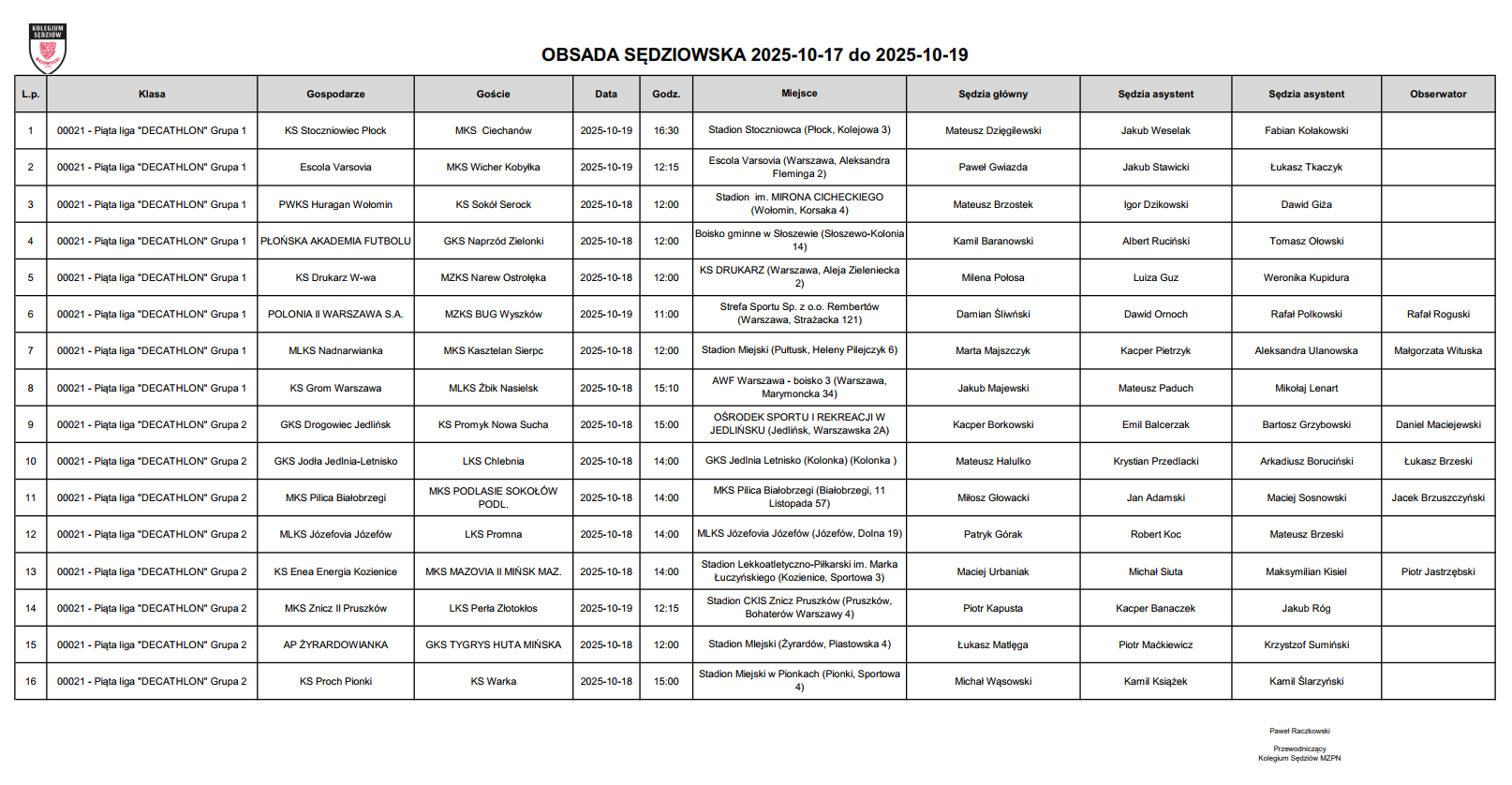 Obsada V liga – XI kolejka – 17-19.10.2025